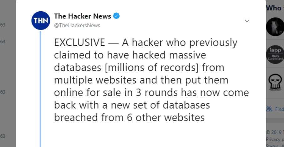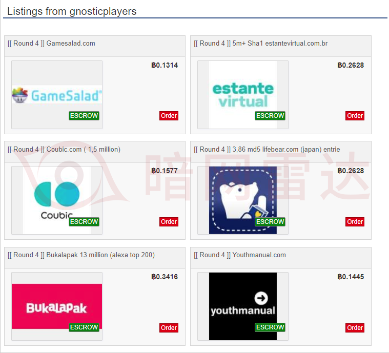 黑客在暗网上出售第四批数据 涉及 6 个网站 2600 万新账户 |