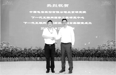 中国电信北京研究院院长陈运清(左)与下一代互联网国家工程中心主任刘东(右)出席“下一代互联网IPv6新技术联合实验室”成立仪式。