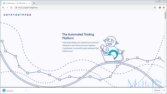 在恶意软件研究人员Fumik0_发现的新攻击活动中,威胁行为者创建了一个伪装成CryptoHopper交易平台的虚假站点,在用户访问时将自动下载Setup.exe执行程序,可如下所示: