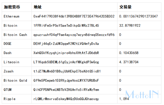 剪贴板劫持工具选择替代的加密货币地址如下表所示: