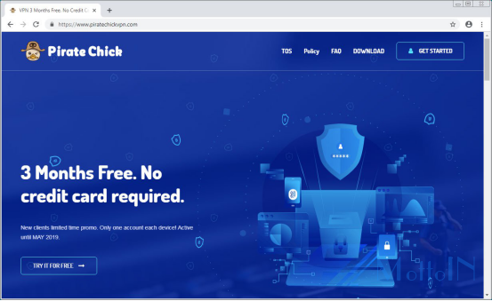 通过创建模仿合法服务商的虚假站点来推广恶意软件,这一现象已经变得越来越普遍。例如,在今年5月份有研究人员发现,有攻击者创建了一个虚假站点来推广名为Pirate Chick的假VPN软件,实际上该软件用于分发AZORult密码窃取特洛伊木马。