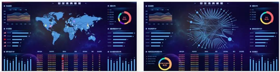 新版本分别从外部威胁态势感知、外连威胁态势感知和内部互连威胁态势感知三个方向,全面的实时的向客户呈现网络的态势感知情况;