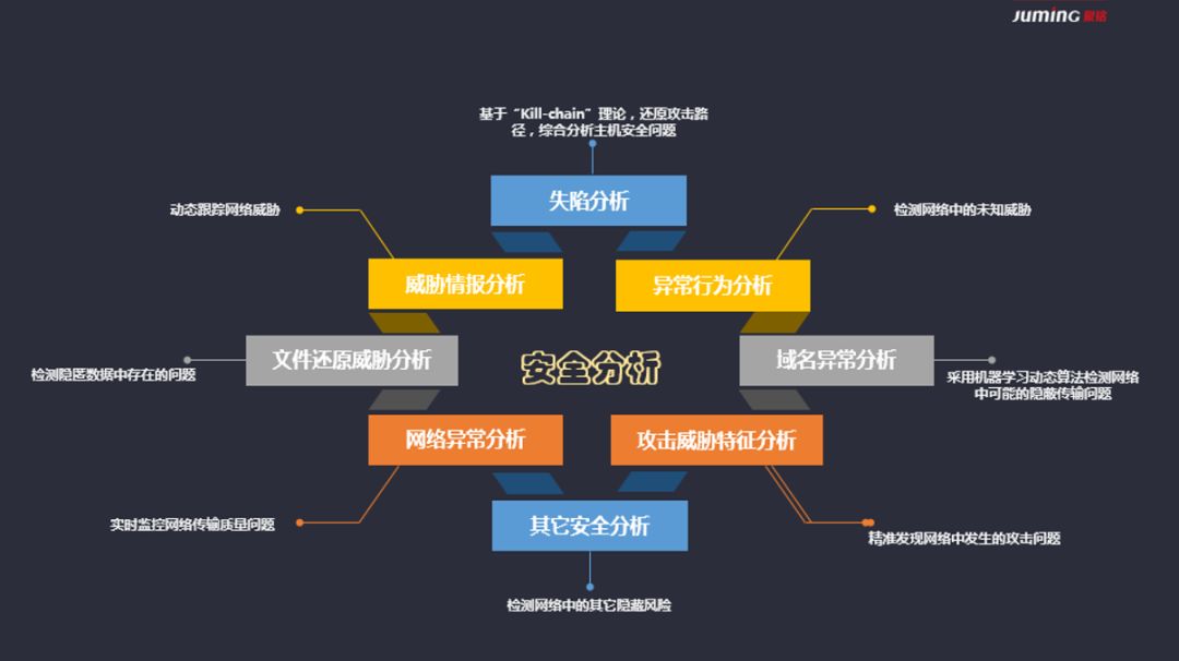 近日,聚铭网络流量智能分析审计系统发布新版本,加入失陷分析、网络威胁态势感知等功能。