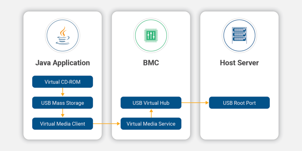 这些小的组件允许以虚拟USB drive的形式来挂载磁盘镜像。固件安全公司Eclypsium的研究人员发现一些超微平台的负责该操作的虚拟媒体服务是通过远程访问的,也是不安全的。
