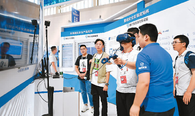 9月16日,嘉宾在2019年国家网络安全宣传周网络安全博览会上参观体验。新华社记者 李