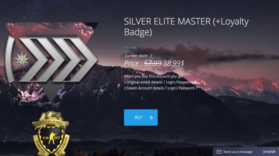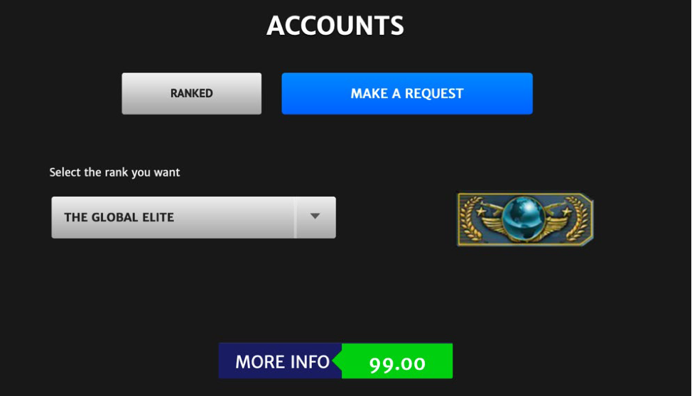 图4.具有Global Elite排名的CS:GO帐户的售价为99美元