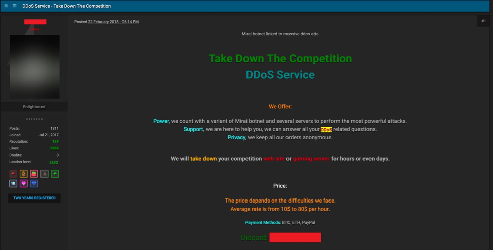 图3.发布DDoS服务的论坛帖子