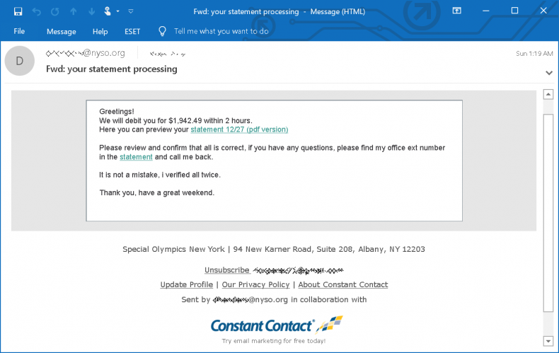 关注特殊竞技运动员的非营利性组织纽约特奥会(Special Olympics of New York)的电子邮件服务器在今年圣诞节前后遭到黑客攻击,并被用来向之前的捐款人发起针对性钓鱼攻击。