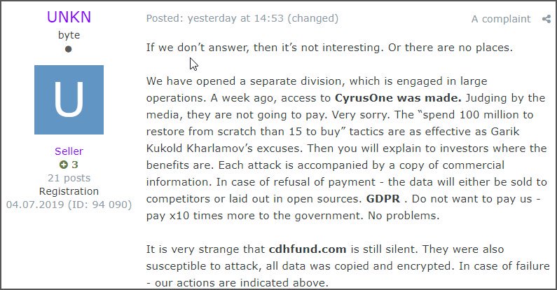 由于未及时支付赎金,Sodinokibi勒索软件背后的攻击者首次发布了从一名受害者那里窃取的文件。自上个月以来,Sodinokibi(也称为REvil)公开表示,他们将开始效仿Maze,如果受害者不支付赎金,就公开从受害者那里窃取的数据。他们在俄罗斯黑客和恶意软件论坛上首次发布了大约337MB所谓的被盗受害者文件的链接。