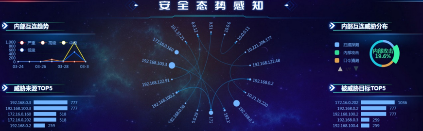 内部互连攻击威胁感知内部互连威胁是指有内网主机或系统对其它内网的主机或系统发起的网络攻击或可能的非法连接及探测。 内部互连攻击一般是指内网失陷主机对其它内网主机进行探测、尝试、渗透,试图最终获得目标主机或系统的控制权,从而在内网横向扩散、收集数据、破坏系统。 其中,有一类为可能的非法连接是指利用受害者主机或系统在某种情况下出现了不应暴露的端口,从而被非法入侵者所利用,如错误地开放一些不应打开的端口。