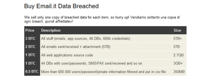 意大利电子邮件服务商被黑 60万用户数据在暗网出售 |