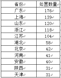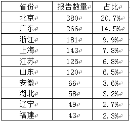 表 漏洞报告涉及IP数量按省份统计TOP 10