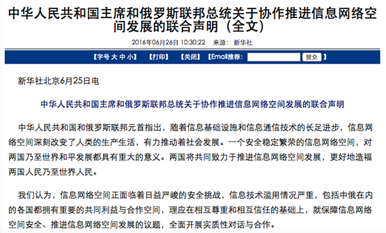 6月25日,新华社发布了中华人民共和国主席和俄罗斯联邦总统关于协作推进信息网络空间发展的联合声明,声明称“信息网络空间正面临着日益严峻的安全挑战,信息技术滥用情况严重,包括中俄在内的各国都拥有重要的共同利益与合作空间,理应在相互尊重和相互信任的基础上,就保障信息网络空间安全、推进信息网络空间发展的议题,全面开展实质性对话与合作”,这份声明的发布,背后透露了哪些信号?又对我国网络安全发展有哪些影响?