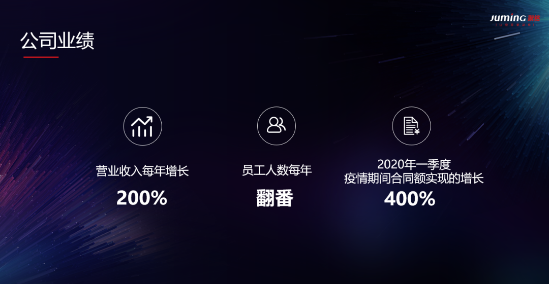 聚铭网络自2016年以来,每年营业收入增长200%,员工人数每年翻番,今年疫情期间一季度合同额较去年同期更是增长超400%!公司的快速发展和发展前景也得到了资本市场的认可,公司在2019年初和今年年初分别获得“共青城锐星”和“腾讯”的战略投资。