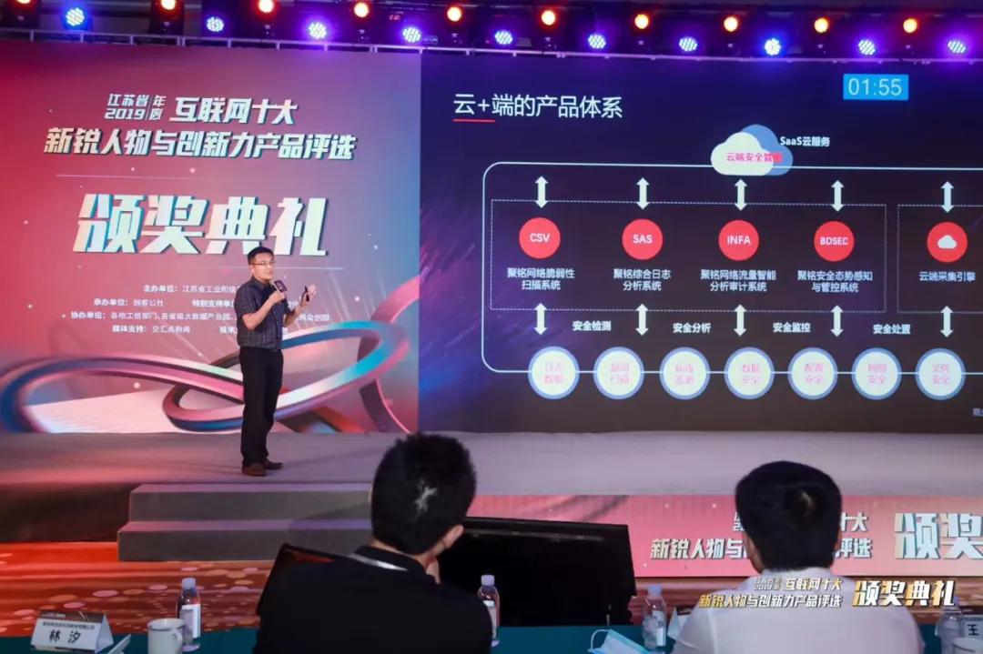 近年来,江苏省积极推动实施网络强国、“互联网+”行动等国家战略。通过推进产业载体建设、培育龙头骨干企业、举办赛事论坛活动、开展应用示范评选等举措,在全省营造出发展互联网经济的浓厚氛围。本次评选活动旨在于表彰过去一年江苏互联网领域涌现出的杰出新锐人物和令人耳目一新的创新力产品,塑造全省互联网企业典范,优化互联网创新氛围。活动历时三个多月,来自全省物联网、在线游戏、工业互联网、网络安全、在新教育、新文娱、新零售等众多领域的领先企业报名,其中包含众多上市公司,经过线下初审、网络投票、专家复审及现场评选等环节,现场共评选出年度十大新锐人物奖、十大突出表现奖与十大创新力产品奖。聚铭网络总经理唐开达最终获得年度突出表现奖。