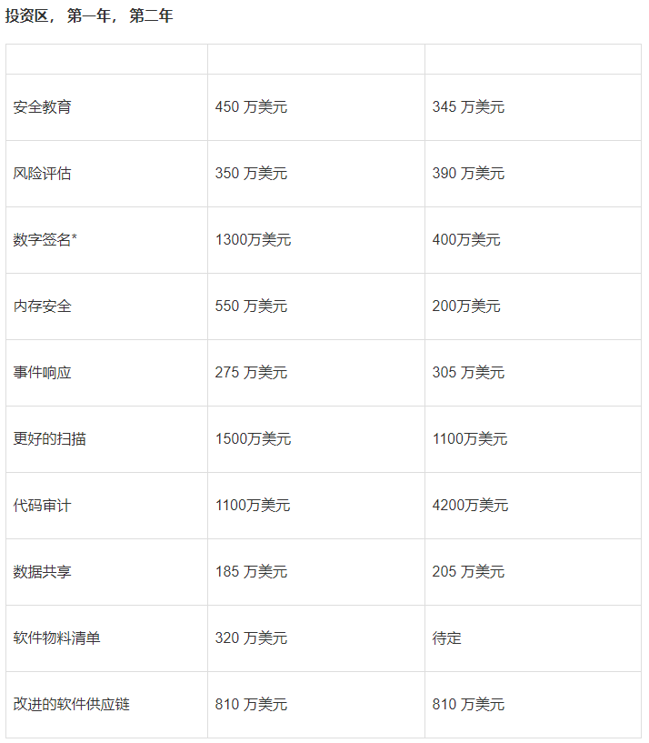 在过去一年中获得突出的投资流之一是软件材料清单或SBOM。该计划详细说明了第一年在该领域的320万美元投资,而后一年的金额尚未确定。