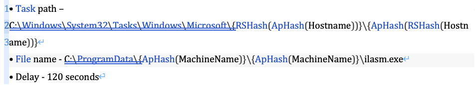 接下来,它将检查系统上是否存在合法的 ilasm.exe 文件(版本 4.0.30319 位于 %windir%\Microsoft.NET\Framework64\v4.0.30319\ilasm.exe 或版本 2.0.50727 位于 %windir%\Microsoft.NET\Framework64\v2.0.50727\ilasm.exe)(如果系统上存在 ilasm.exe,则它应该位于这些目录之一中)。如果未找到该文件,安装过程将终止,一旦找到 ilasm.exe就会创建一个计划任务作为持久性机制: