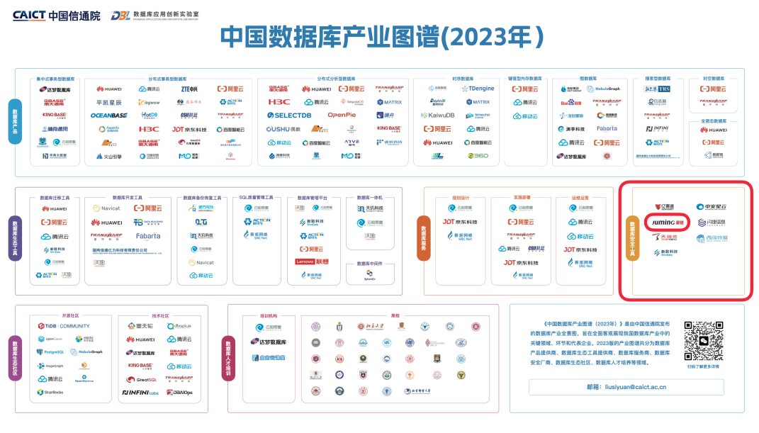 作为国内领先的安全运营商,同时也是中国信通院数据库应用创新实验室成员单位,聚铭网络凭借先进的技术实力、优秀的创新能力,以及现有市场影响力,成功入选“产业图谱-数据库安全工具”板块。