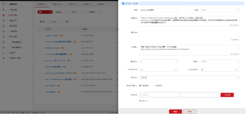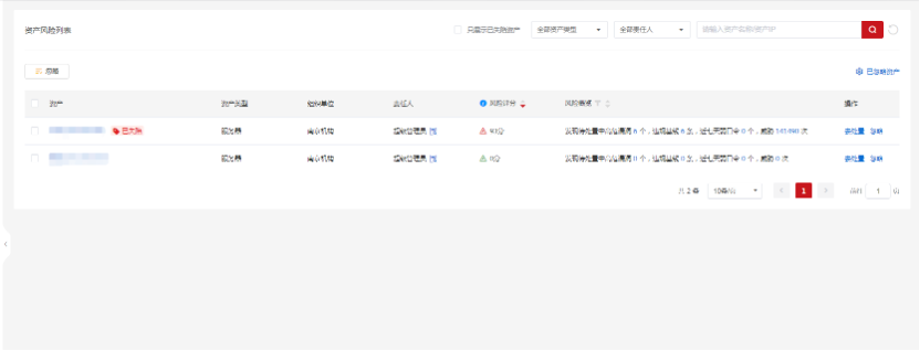 资产风险生命周期管理功能主要用以解决用户在无资产视角下的风险聚合,对资产整体风险感知和整体风险数据统计呈现的需求,以及在流程层面多人难以协同进行安全运维的问题。