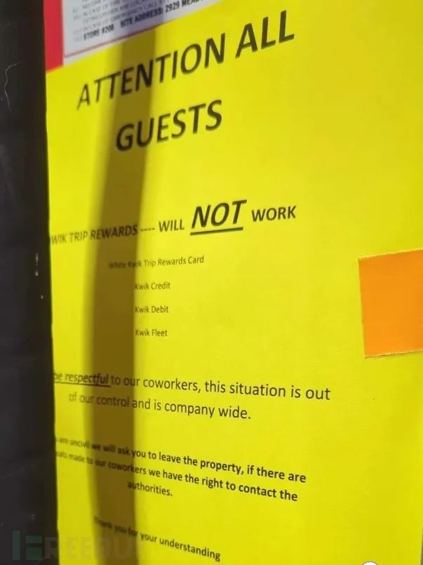 不少Kwik Trip的门店经理和员工都开始在店门口张贴告示,解释停电是他们无法控制的,这是一次公司范围的事件,并表示希望客户尊重工人。