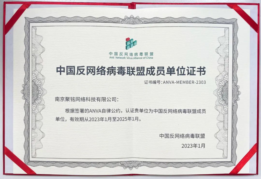 近日,聚铭网络凭借强劲的技术实力和产品优势,被认证为中国反网络病毒联盟(以下简称“ANVA联盟”)成员单位。作为国内领先的安全运营商,聚铭网络一直致力于网络安全智能分析和检测,提供全面的信息安全防护,维护网络环境的安全与稳定。