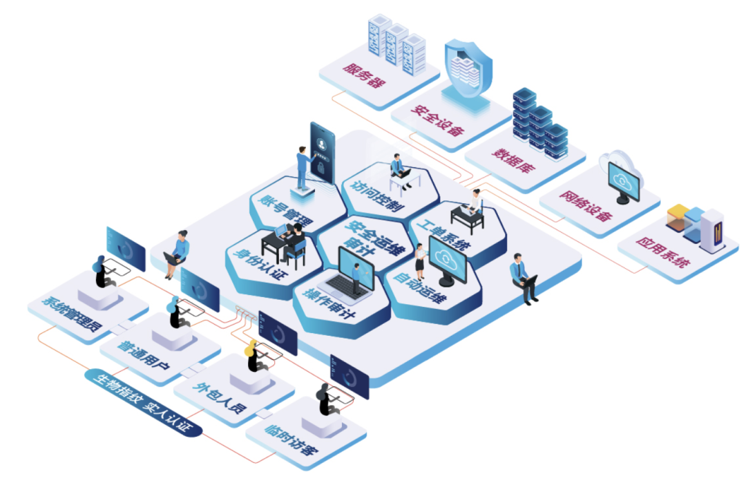 通过将自然人与运维权限、运维账号、设备资源绑定,根据不同运维人员的角色和需求授予不同权限,最小粒度授权达到权限控制精细化的目的。