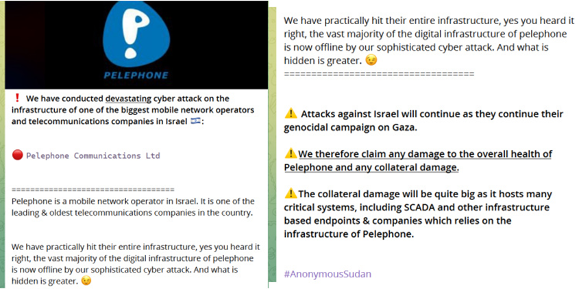 图:匿名苏丹关于 Pelephone 袭击事件的帖子