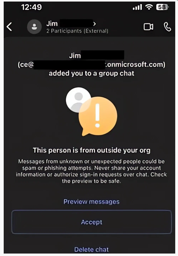 据统计,攻击者现已发送了 1000 多个恶意 Teams 群聊邀请。一旦目标对象接受聊天请求,攻击者会诱骗他们下载一个使用双扩展名的文件,文件名为 "Navigating Future Changes October 2023.pdf.msi",这是 DarkGate 常用的伎俩。 安装成功后恶意软件就会连接到其位于 hgfdytrywq[.]com 的命令控制服务器,Palo Alto Networks 已确认该服务器是 DarkGate 恶意软件基础架构的一部分。 由于在默认情况下,微软允许外部 Microsoft Teams 用户向其他用户发送消息,这才给了这种类型的网络钓鱼攻击可乘之机。 AT&T Cybersecurity 网络安全工程师Peter Boyle认为:除非日常的必要业务需使用,否则他建议大多数公司禁用 Microsoft Teams 中的外部访问,因为电子邮件相对来说是更安全、监控更严密的通信渠道。同时提醒用户警惕未经请求的信息来自何处。因为网络钓鱼的形式很多样,很可能不是那种典型的电子邮件钓鱼诈骗形式。