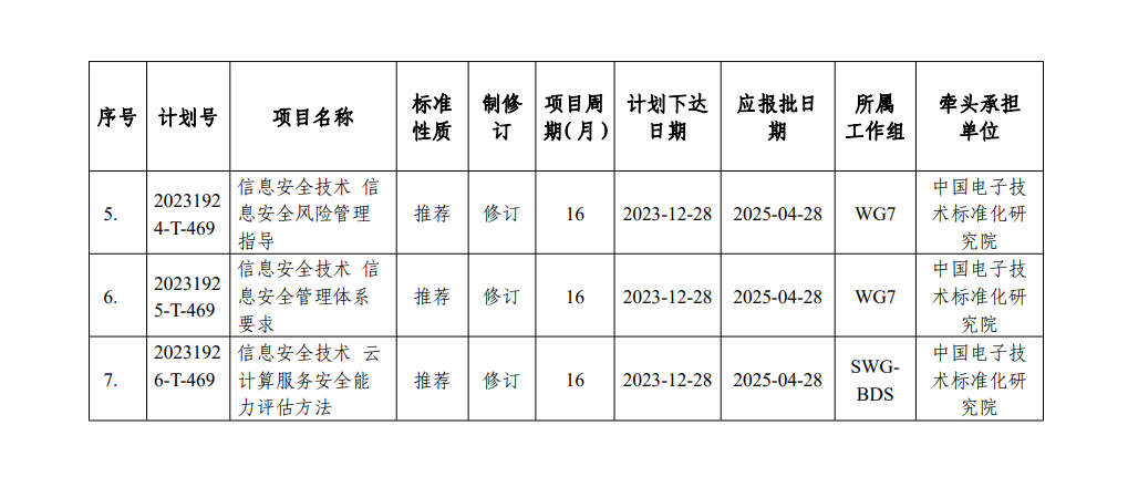 全国信安标委发布7项网络安全推荐性国家标准计划 近日,国家标准化管理委员会下达的推荐性国家标准计划中,包括7项由全国网络安全标准化技术委员会归口的标准项目,清单见附件。请项目所属工作组制定项目推进计划,并督促项目牵头承担单位按计划抓紧落实,在计划执行中要加强协调,广泛征求意见,确保标准质量和水平,按要求完成国家标准制修订任务。