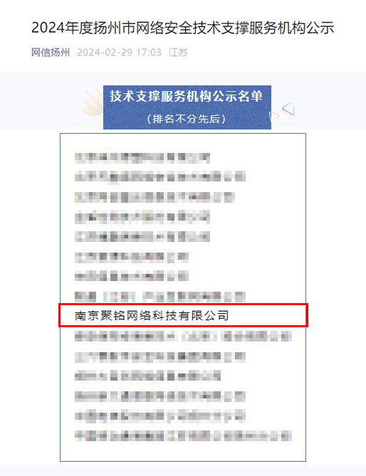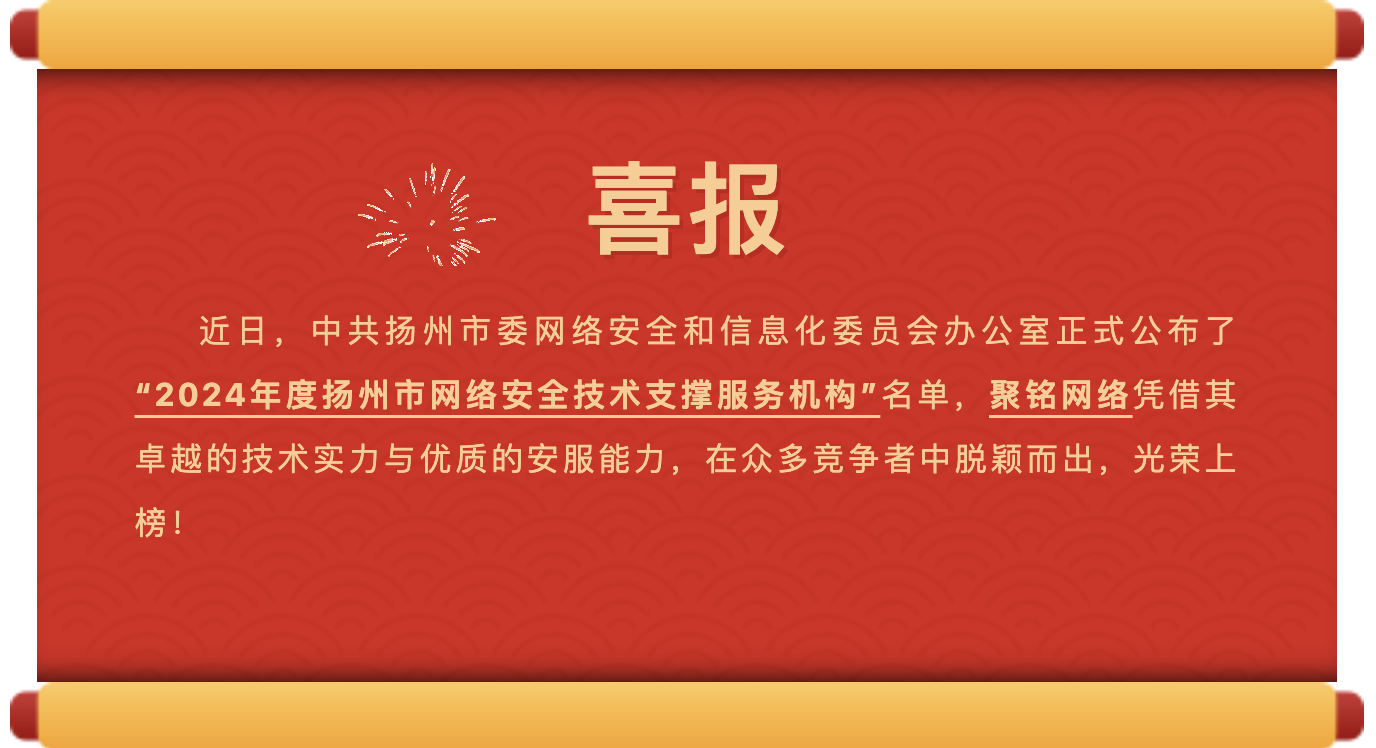 为了健全扬州市网络安全技术服务管理工作机制,加强网络安全技术支撑机构队伍建设,提升网络安全应急处置和风险防范能力,扬州市网信办经过自主申报、资质审查、专家评议等多个环节的严格筛选,最终选定了一批技术精湛、服务优质的网络安全技术支撑服务机构。聚铭网络凭借其出色的表现,成功跻身这15家优秀企业之列,成为2024年度扬州市网络安全技术支撑服务机构的重要一员。