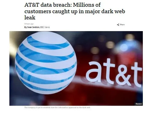 据英国广播公司(BBC)当地时间31日报道,美国电信巨头公司AT&T宣布,正在调查一起持续多周的数据泄露事件,该事件涉及该公司数千万客户的数据被发布到暗网上。