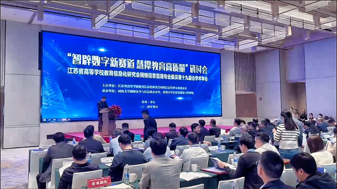 第十九届江苏高校研讨会暨学术年会由江苏省高等学校教育信息化研究会网络信息管理专业委员会主办,河海大学网络安全与信息化办公室、常州大学信息化建设与管理处联合承办,在江苏省常州市金坛万枫酒店隆重举行。本次研讨会的主题为“智辟数字新赛道、慧撑教育高质量”,旨在探讨如何利用智能技术开辟教育领域的新发展道路,并以智慧支持的方式提升教育的质量。