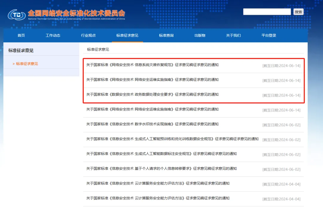 1、网安标委发布《网络安全技术 网络安全运维实施指南(征求意见稿)》等三项国家标准