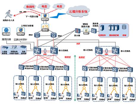 校园网边界的天然位置决定了这里是一切威胁侵入的入口、远程受控的通道以及信息泄漏的出口,也是校园网络重点改造地方。通过工程师与技术细致沟通发现之前网络存在以下问题: