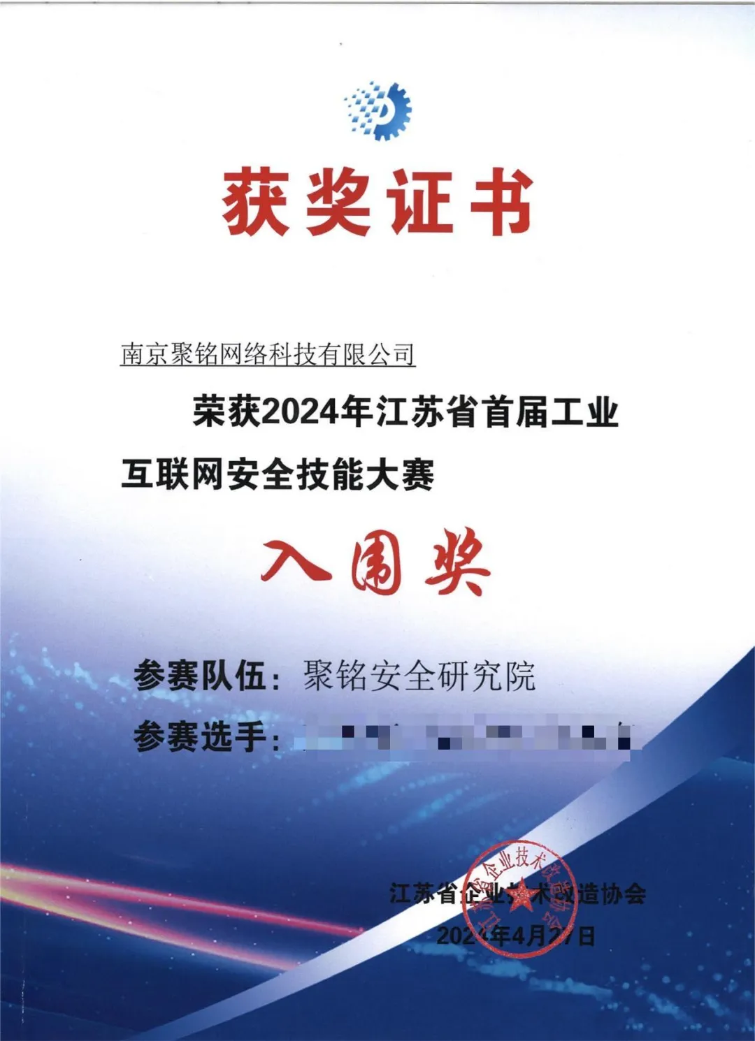 4月27日,备受瞩目的2024年江苏省首届工业互联网安全技能大赛在淮安市江苏电子信息职业学院圆满落幕。在这场激烈的竞赛中,聚铭网络参赛队伍凭借出色的表现成功挺进决赛,并荣获了“入围奖”的殊荣。这一荣誉的取得,不仅是对聚铭网络技术实力的认可,更是对其在工业领域实战积累的肯定。