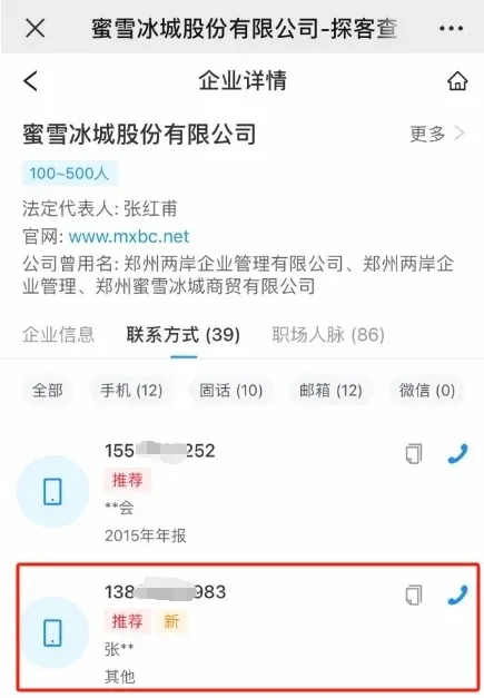 经与企业家本人或接近企业家的知情人士确认,记者核实到这些平台销售的包括农夫山泉创始人钟睒睒、森马服饰创始人邱光和、荣盛集团董事长李水荣、新尚集团董事长唐立新、蜜雪冰城实控人张红甫、钟薛高创始人林盛、蔚来汽车联合创始人秦力洪等人在内的手机号均为其本人所有并正在使用。