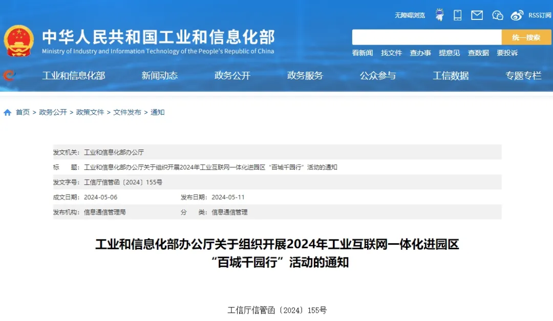 工信部组织开展2024年工业互联网一体化进园区“百城千园行”活动 |