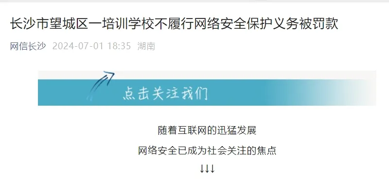 长沙某培训学校因不履行网络安全保护义务被罚款