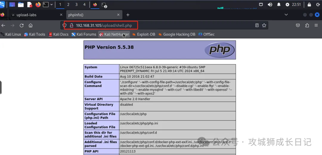 详细的展示了当前PHP的所有信息。这样就把webshell上传成功了。