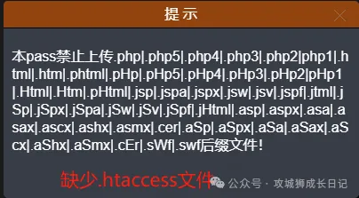 在Pass04关卡的上传页面,我们先上传 .htaccess 文件 。