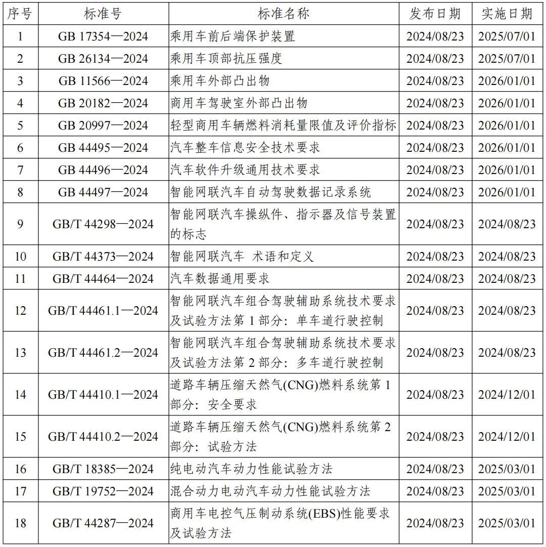 2、《汽车整车信息安全技术要求》等18项汽车国家标准发布
