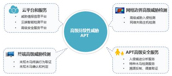 该体系可以检测网络中存在的“僵尸”、“木马主机”和正在遭受的攻击,通过云端威胁情报快速发现威胁源,针对性处理不同类型的威胁事件,利用管道端技术先定位到下部门区域,再定位到具体终端主机,利用终端检测技术协助处理,并通过溯源分析手段了解始末,最终实现包括“态势感知、情报信息、实时监测、追踪溯源”四大安全防御必备要素。