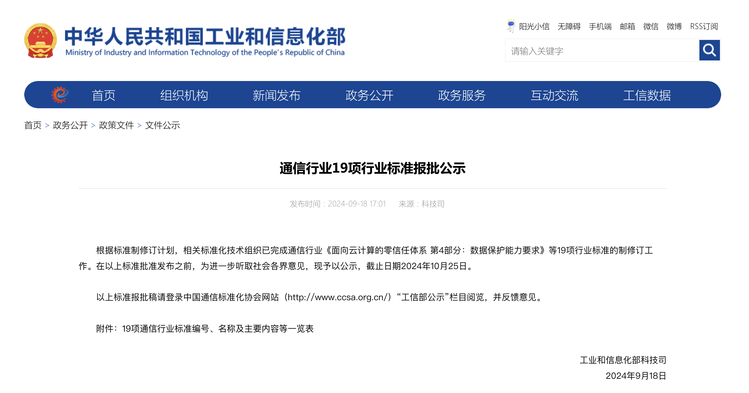 根据标准制修订计划,相关标准化技术组织已完成通信行业《面向云计算的零信任体系 第4部分:数据保护能力要求》等19项行业标准的制修订工作。在以上标准批准发布之前,为进一步听取社会各界意见,现予以公示,截止日期2024年10月25日。