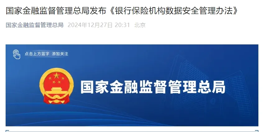 国家金融监督管理总局发布《银行保险机构数据安全管理办法》