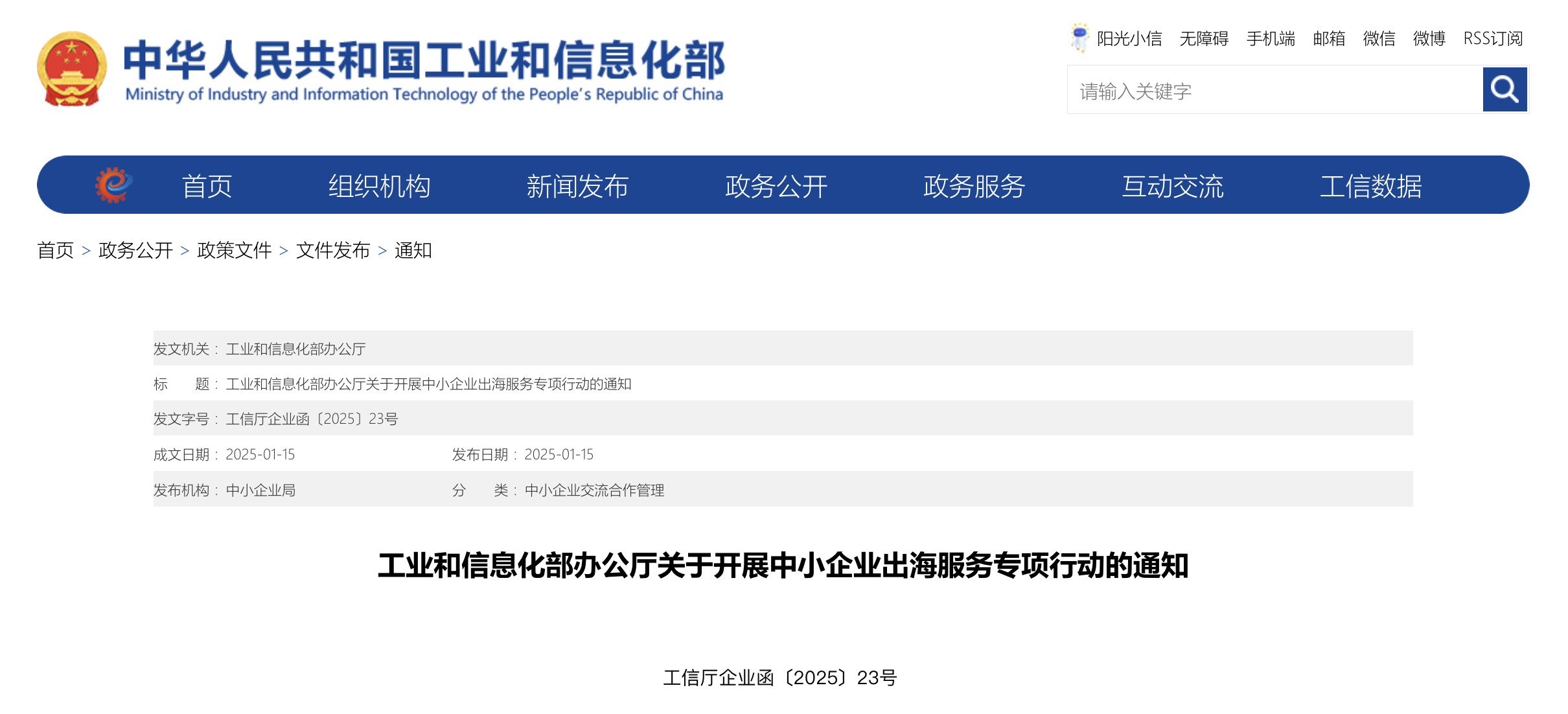 (三)强化宣传引导。工业和信息化部在中国中小企业服务网设置“中小企业出海服务专项行动”专栏,集中展示各地服务行动开展情况、工作成效等,适时总结推广各地、服务机构创新举措和经验做法。各地中小企业主管部门要结合实际,多渠道多形式宣传服务活动,营造出海服务助企惠企良好氛围。
