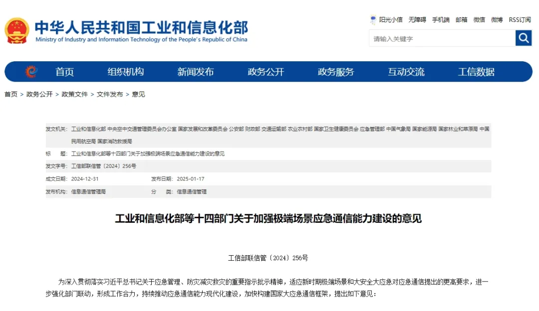 工信部等十四部门联合印发《关于加强极端场景应急通信能力建设的意见》