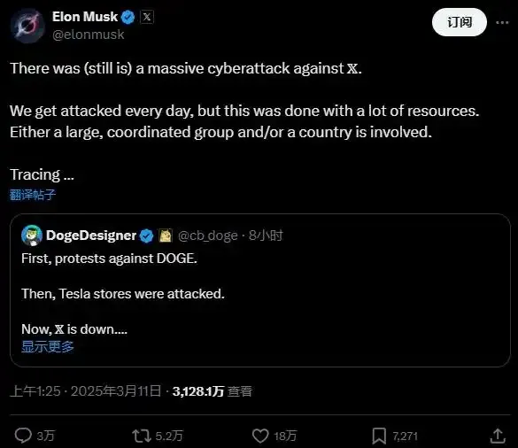 4、马斯克称其X平台遭大规模网络攻击,IP源自乌克兰