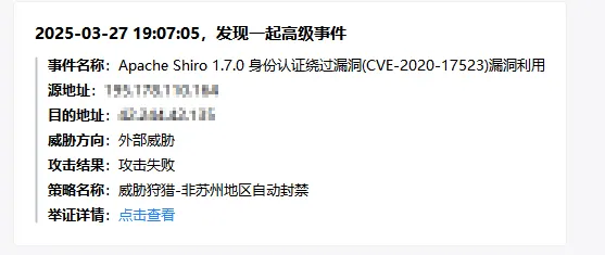 3、快速处置:支持在监控页面直接执行阻断、封禁、自动化处置等操作,无需在多菜单单独处理。
