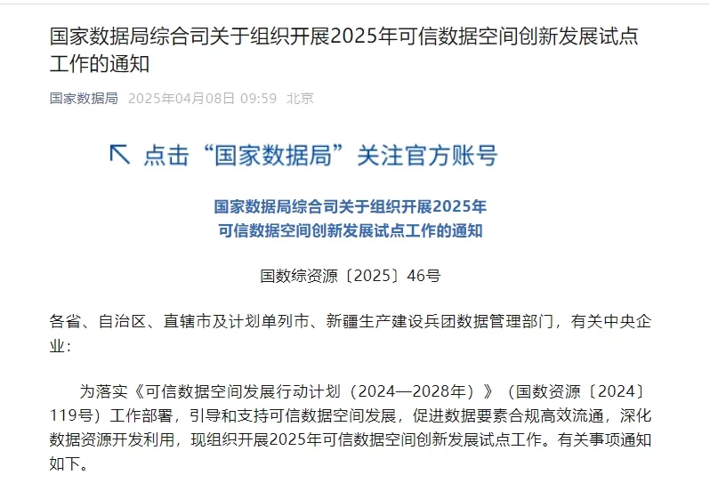 2、国家数据局组织开展2025年可信数据空间创新发展试点工作