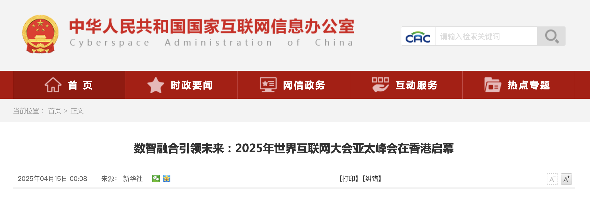 新华社香港4月14日电(记者曹霁阳)为期两天的2025年世界互联网大会亚太峰会14日在香港会议展览中心开幕。本次峰会主题是“数智融合引领未来——携手构建网络空间命运共同体”,来自全球50余个国家和地区的政府部门、国际组织、企业、民间团体高级别代表以及专家学者等近千名嘉宾参会。